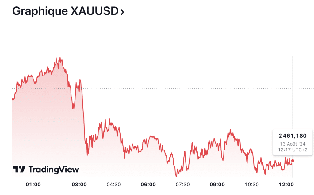 13/08 prévisions du cours de l’or. Selon l’outil FedWatch du CME Group, les anticipations du marché concernant la prochaine décision de la Réserve fédérale en septembre sont désormais unanimes. En effet, il y a une probabilité de 100 % que la banque centrale américaine réduise son taux directeur. Dès lors, cette anticipation de baisse des taux est en grande partie motivée par les signes de ralentissement économique et les craintes d’une récession.