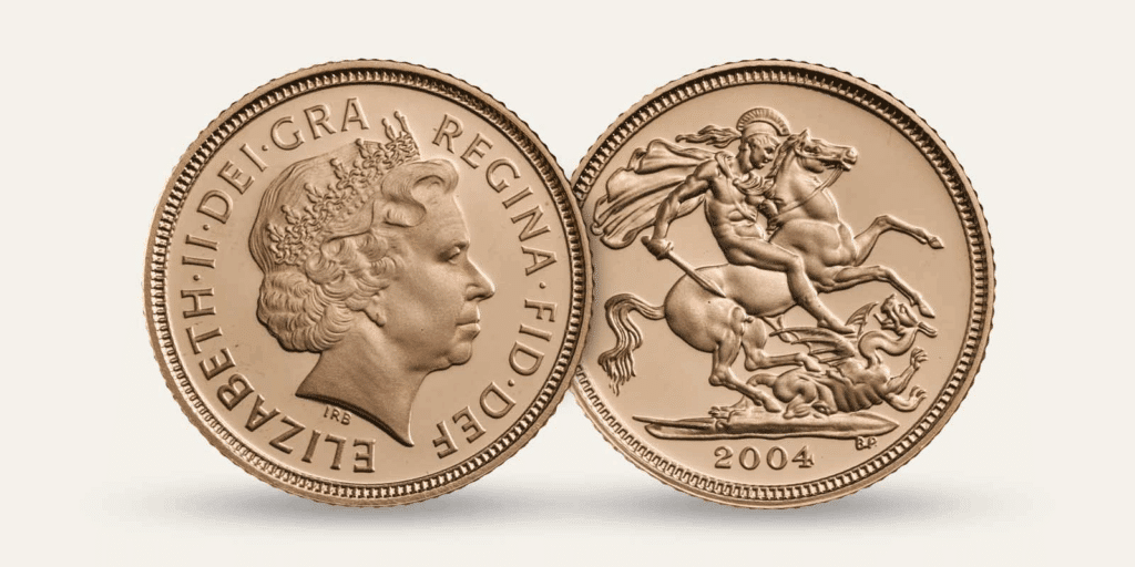 Le revers conserve fidèlement la figure du Saint Georges de Pistrucci, ce chef-d’œuvre intemporel qui continue de symboliser la couronne britannique. Sous Élisabeth II, le souverain se transforme car ce n’est plus une monnaie de circulation mais une pièce d’investissement produite en versions « bullion » pour l’épargnant et « proof » pour le collectionneur. Fabriquée avec des techniques modernes dans les ateliers de Llantrisant au Pays de Galles, le souverain contemporain conserve scrupuleusement les spécifications établies en 1817 et c’est cette extraordinaire continuité qui fait la force de cette pièce et qui contribue à sa reconnaissance universelle.