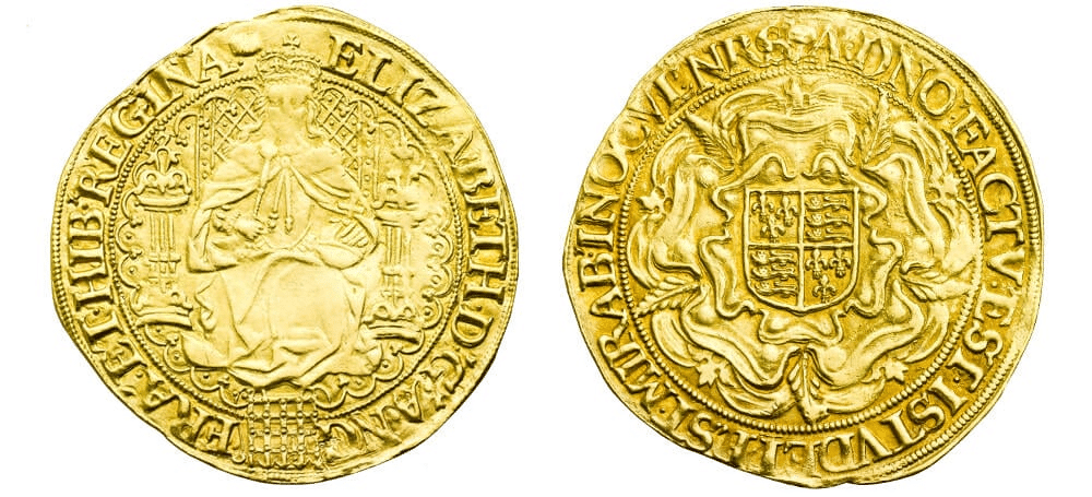 Quand Élisabeth Iʳᵉ monte sur le trône en 1558, l’Angleterre est un pays divisé et épuisé par trente ans de tensions religieuses. Dès le début de son règne, elle restaure l’Église d’Angleterre fondée par son père Henri VIII et réaffirme que le monarque est chef suprême de cette Église. Cette idée se reflète sur les souverains avec l’inscription latine « ELIZABETH D G ANG FRA ET HIB REGINA » qui reprend la formule traditionnelle.