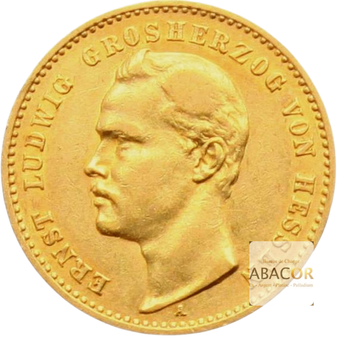 Pièce d’or 10 Mark Or Ernst Ludwig. Abacor, comptoirs experts en numismatique depuis près de 30 ans, vous accompagnent dans l’achat de pièces d’or, alliant investissement sûr et passion pour l’histoire.
