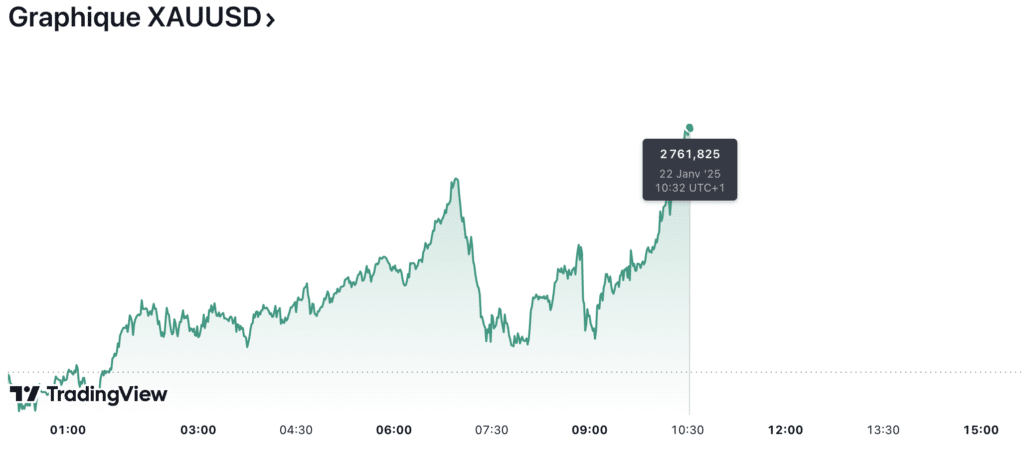 Lors des échanges du lundi à New York, le prix de l’or ont franchi une barrière technique majeure en dépassant les 2 750 $. Ce mouvement reflète un changement significatif dans la dynamique du marché, alimenté par un affaiblissement simultané du dollar américain et des rendements des obligations du Trésor.