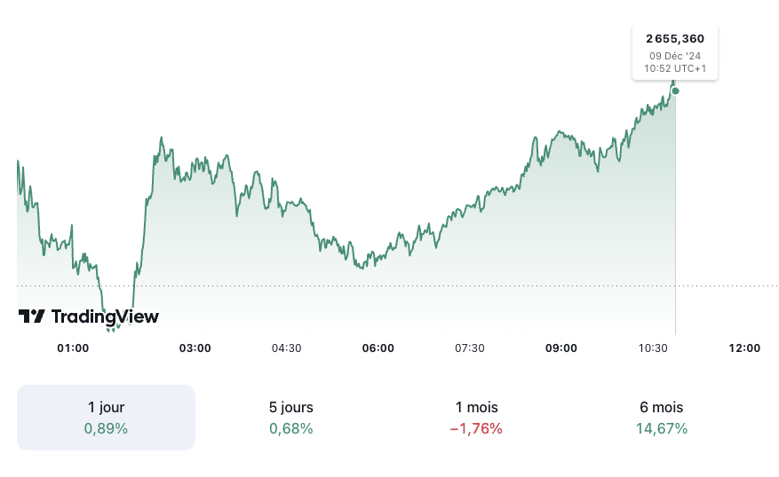 La hausse du prix de l’or, atteignant ce lundi 9 décembre les 2 655 dollars l’once, est principalement liée aux spéculations autour de la politique monétaire américaine. En effet, les attentes d’une baisse des taux d’intérêt par la Réserve fédérale ont alimenté une dynamique haussière pour les métaux précieux.